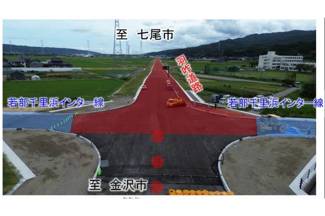 なお、国道159号の現道と羽咋道路をつなぐ、県道232号「若部千里浜インター線」も延伸して同時に開通します。