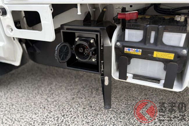 展示車両ではバッテリーが見えるようにあえて透明なカバーにしていますが、もちろん既存のクルマと同じ荷台にすることも可能で、最大積載量や最低地上高も変わらず、これまで同様の使い勝手を提供できます。
