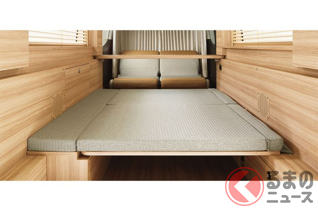 日産が新「“ベッド付き”商用バン」発表! めちゃ豪華な“木目内装”に「快適すぎるインテリア」搭載した“走る部屋”!「キャラバンMYROOM」が断熱・遮音性アップで超進化!
