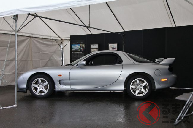 長崎県内に在住していた高齢女性が長年所有していたマツダ「RX-7」。「第2の人生」に向けてマツダ社内でメンテナンスを受けていましたが、マツダ公式イベント「マツダファンフェスタ2025」で姿を現しました。