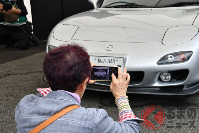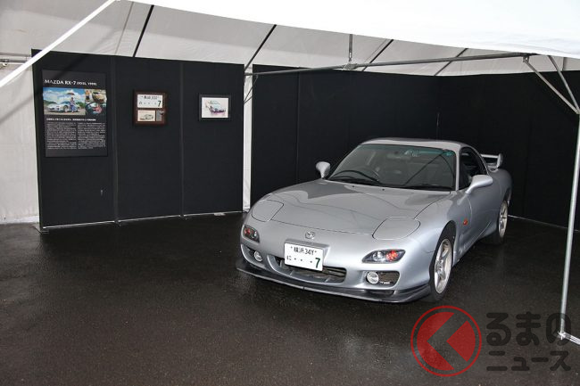 マツダが「“特別”なRX-7」を実車展示! 長崎の「80歳女性」が25年所有した「ともだち」が甦る! 5速MT×流麗ボディの「2ドアスポーツカー」 ファンフェスタにサプライズで登場