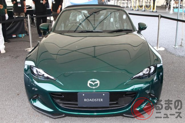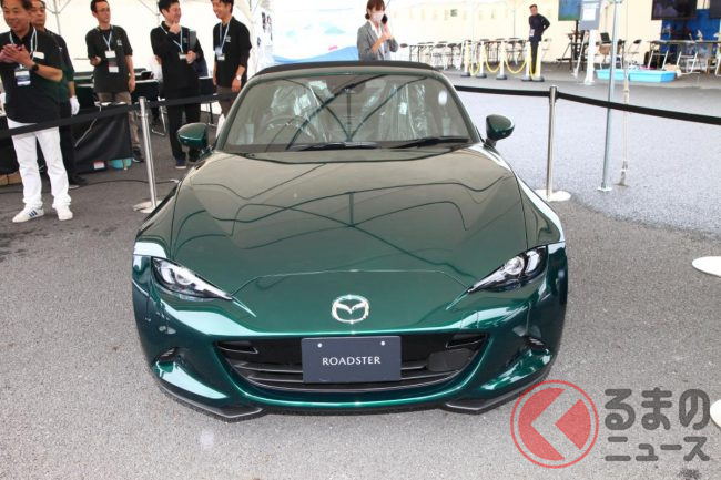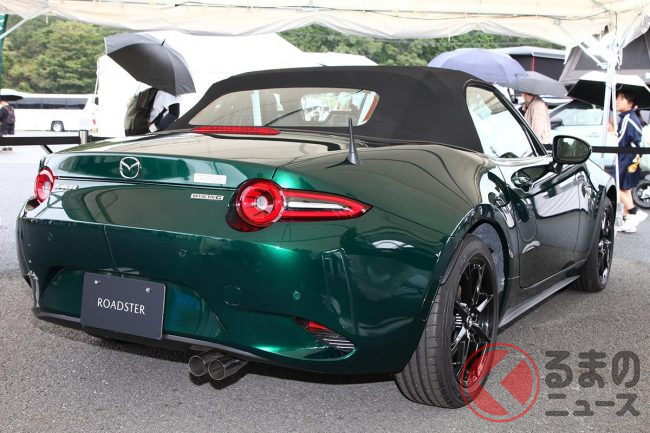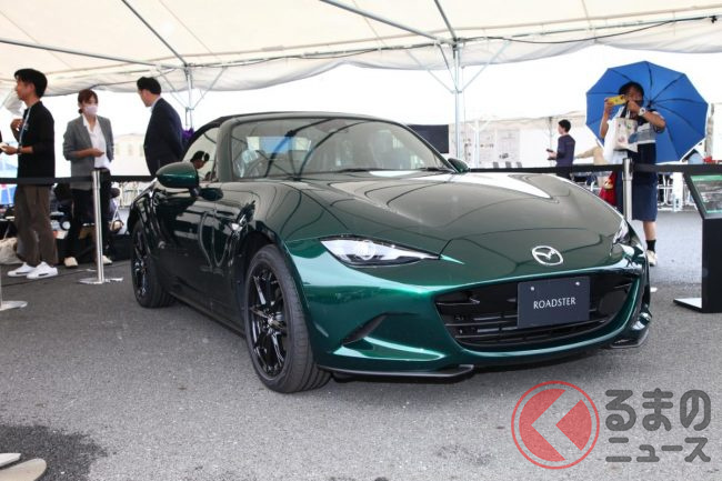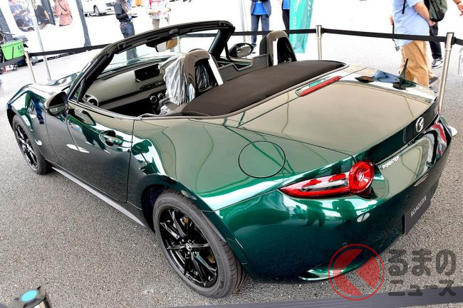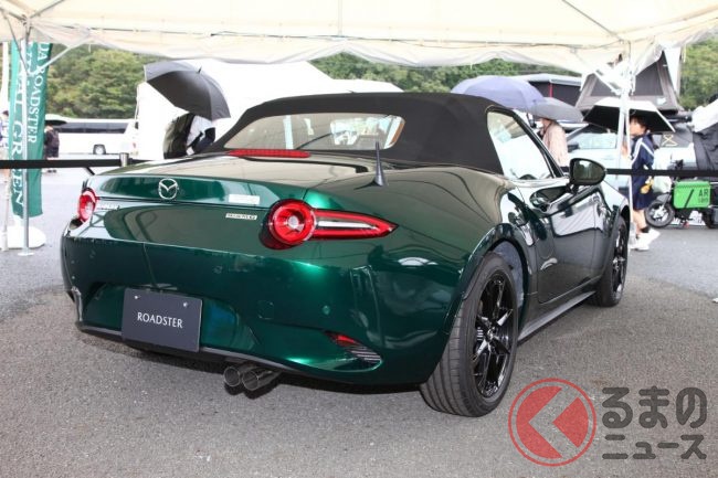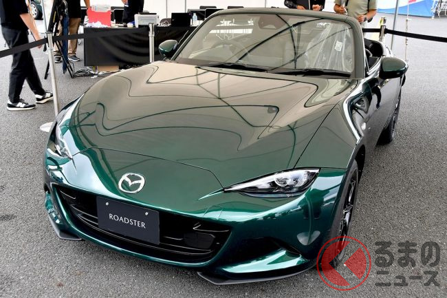 2025年10月4日、5日の2日間に渡って富士スピードウェイを会場に開催された「マツダファンフェスタ2025」では、「マツダスピリットレーシングロードスター」の正式発表に注目が集まりましたが、それに負けず劣らず注目を集めたのが、通常のラインナップには存在しない「グリーン」のボディカラーをまとった「ロードスター」でした。