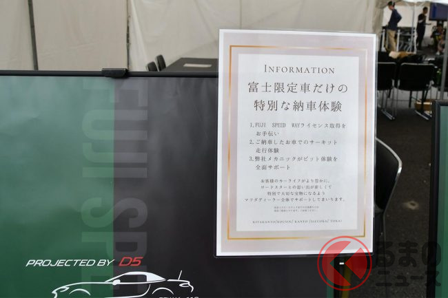 そしてこの限定車のみの特別な納車体験として、富士スピードウェイの走行ライセンス取得のサポートや、納車された車両での富士スピードウェイの走行体験(ディーラーメカニックのピットサポート付)なども予定しているとのことで、購入後のカーライフがより充実したものになるようにしたいという想いがあるとのことでした。