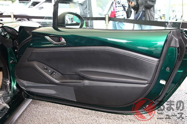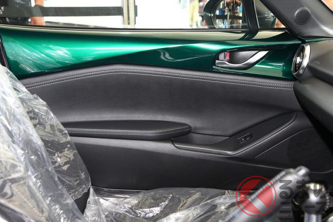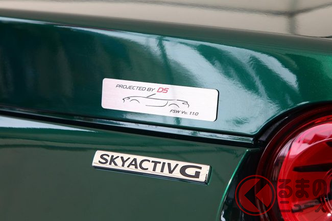 この車両は北関東マツダ、甲信マツダ、関東マツダ、静岡マツダ、東海マツダのディーラー5社が企画した会場限定販売のロードスターとなっており、初代のNA型ロードスターに存在していた「Vスペシャル」をオマージュしたグリーンのボディカラーをまとっているのが最大の特徴です。