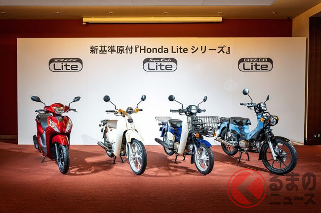 ホンダは、この基準に適合する新基準原付として、スーパーカブ110 Lite、スーパーカブ110プロLite、クロスカブ110 Lite、Dio110 Liteの4機種を同日に発表。
