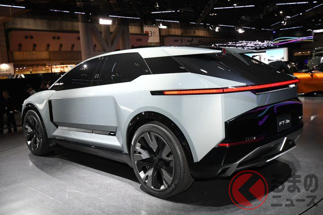 この姿を見て、思い出したのが、前回の「JMS2023」にトヨタが出品した、次世代に向けたSUVタイプのBEVコンセプトカーの「FT-3e」です。