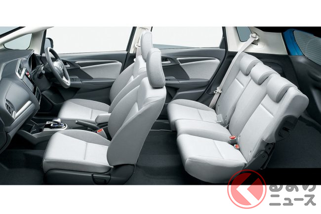 さらに、フィットの売りのひとつでもあった、リアシートのチップアップ&ダイブダウン機構や、6:4分割可倒式バックレスト、リクライニング機構なども削除。まるで軽自動車のエントリーグレードにあるような、ただ倒せるだけの一体可倒式リアシートに交換。