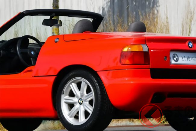 35年落ちでも“1400万円”の「BMW」!? 斬新「消えるドア」採用の「“2人乗り”オープンカー」が現る! 5速MT×「直6エンジン」搭載の「Z1」独国のオークションに登場