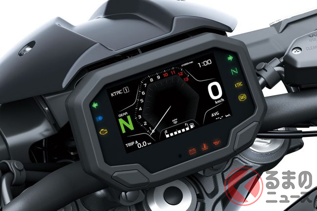 機能面では、パワーがかかり過ぎた際にリアタイヤの空転を制御するシステム「KTRC(カワサキトラクションコントロール)」やスリッパークラッチが装備されています。さらに、表示モードを切り替えできる新開発の4.3インチTFTメーターやスマートフォンとの連携機能も備わっています。