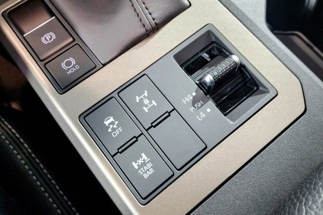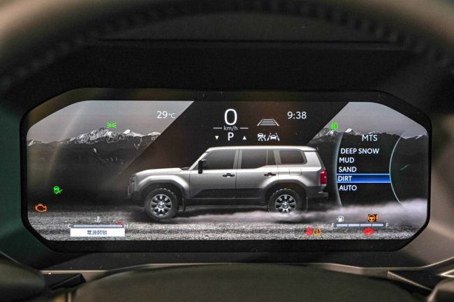 さらに、ランドクルーザーはフルタイム4WDシステム、トルセンLSD(センターデフロック付き)、電動トランスファーケースなども標準装備したほか、強化版のMTS(マルチテレインセレクト:AUTO/DIRT/SAND/MUD/DEEP SNOW)やクロールコントロールといった機能も備え、本格的なオフロード走行のニーズに応えます。