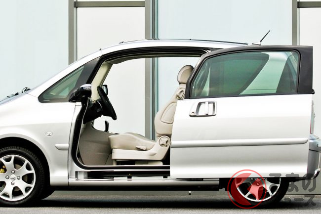 しかし全高が1600mmを超えるトールワゴンスタイルとなっており、なにより個性的だったのが、世界初となる左右大型電動スライドドアを備えた3ドア仕様となっていた点です。