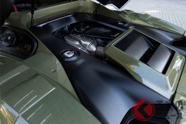 ボディサイズは全長4700mm×全幅1975mm×全高1198mm、ホイールベース2600mm。ドライ重量は1550kgで、前後重量配分は41.5:58.5。極めて低い重心と最適化されたエアフローにより、空力性能とハンドリング性能を高次元で両立しています。