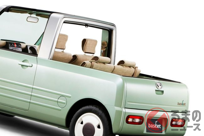 ダイハツの「“4人乗り”軽トラ」がスゴい! 超レトロな「丸目ライト」×「オシャなグリーン」ボディ採用! 解放感もハンパない「バスケット」コンセプトに注目!