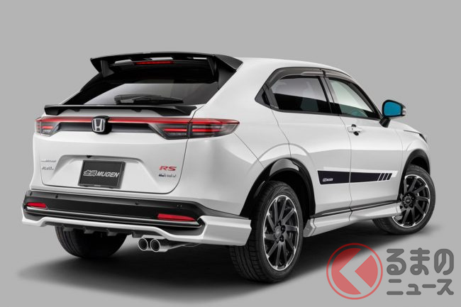 ホンダ「新クーペSUV」発表! 専用スポーティ内外装×ローダウンサス新採用した「ヴェゼルRS」がスゴい!“2段リアスポイラー”がアグレッシブすぎる「無限カスタム」とは!