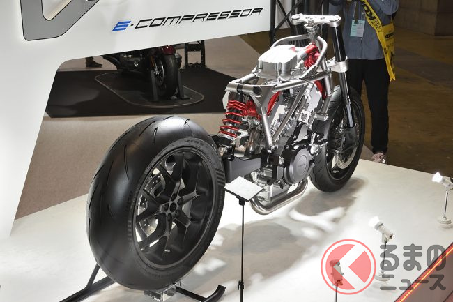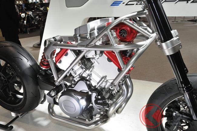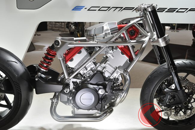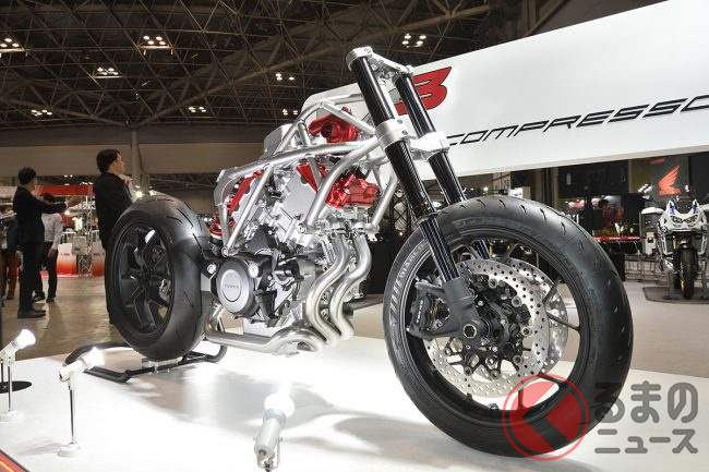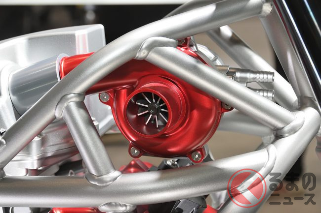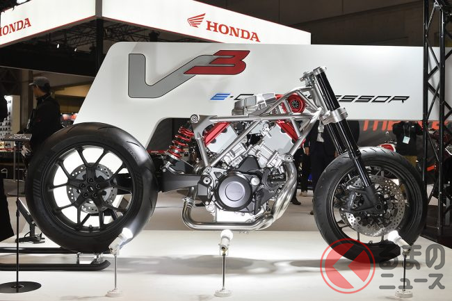 そこでクルマ好きのみならずバイク好きも気になるのが、2025年3月から4月にかけて大阪・東京・名古屋で開催された「モーターサイクルショー」でホンダが日本初公開した、世界初の「電動過給機付きV型3気筒エンジン」の続報です。