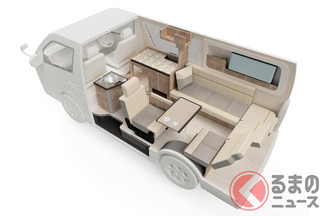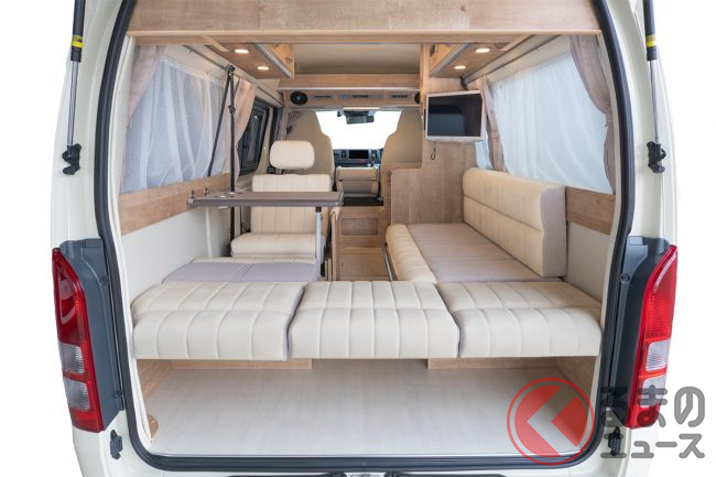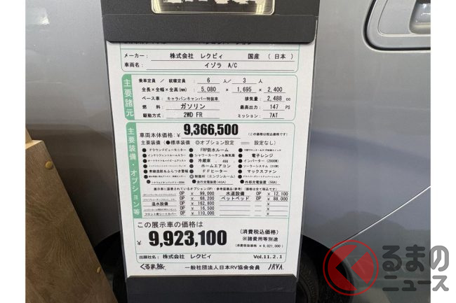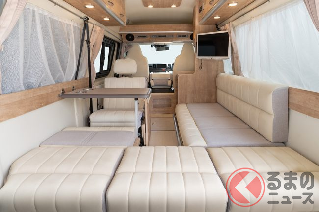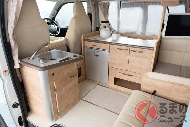 なお会場の展示車は標準装備のほか、オプションの温水設備、水道設備、ペットベッドなどを備え、992万3100円(2WD・ガソリン仕様)で案内されていました。