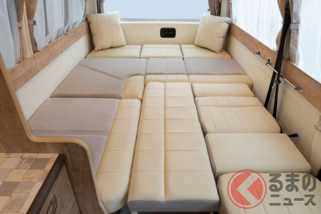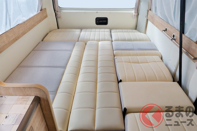 就寝時にはサイドソファと組み合わせてベッドスペースを展開が可能で、大人2名と子供1名がゆったりと休めるサイズ感です。なお就寝定員は3名。乗車定員は6名で、普段使いにも対応できる設計です。