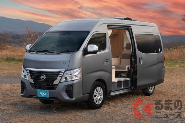 「シャワー室」完備!? 日産「大型ワンボックス商用バン」がスゴい! 全長5m級「ひろびろボディ」に「電子レンジ」「家庭用エアコン」もついてて最高です! レクビィの本格「キャラバン」キャンピングカー「イゾラ」に注目