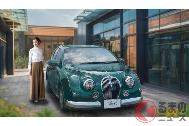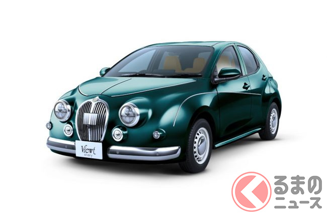 6速MTあり! 国産「ちいさな高級車」がスゴい! “匠”が手がけた「レザー」内装×全長4.1m級で「ほどよいサイズ」! レトロな「キラキラ」顔もカッコいい「“新”ビュートストーリー“ロイヤル”ED」に販売店の反響は!?