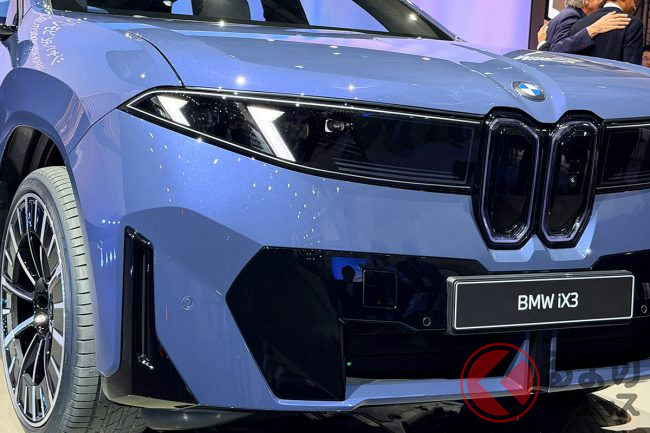 469馬力の新型「ミドルSUV」をJMS2025で日本初公開! 全長4.7m級ボディにコンパクト化された縦型キドニーグリル採用! 異次元のトルク645Nmも発揮のBMW「iX3」登場