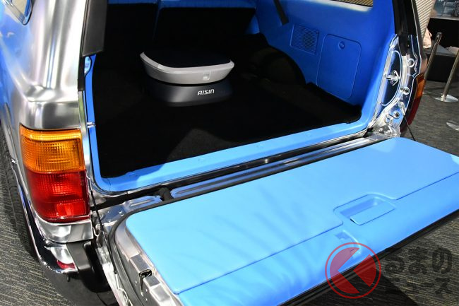 トヨタ「ハイラックスサーフ」で最新技術をアピール!? 懐かしい1台で”斬新ドア”や”空力デバイス”をJMS2025で展示するアイシンの狙いとは