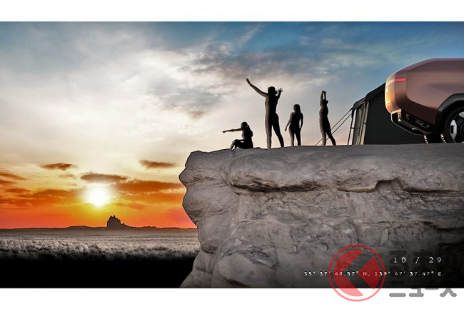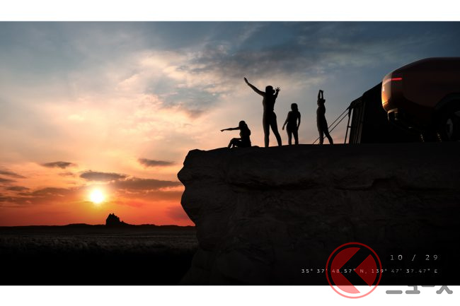 ブースは、コンセプトカーの世界観を忠実に表現し広大な砂漠への冒険をイメージした造形で、五感を刺激する演出を随所に取り入れ、来場者の没入感を高め冒険心をかき立てるとのことです。