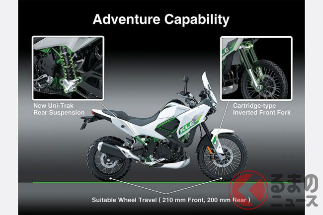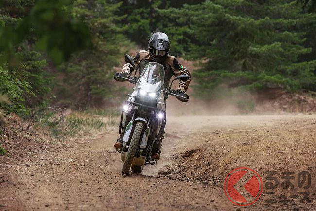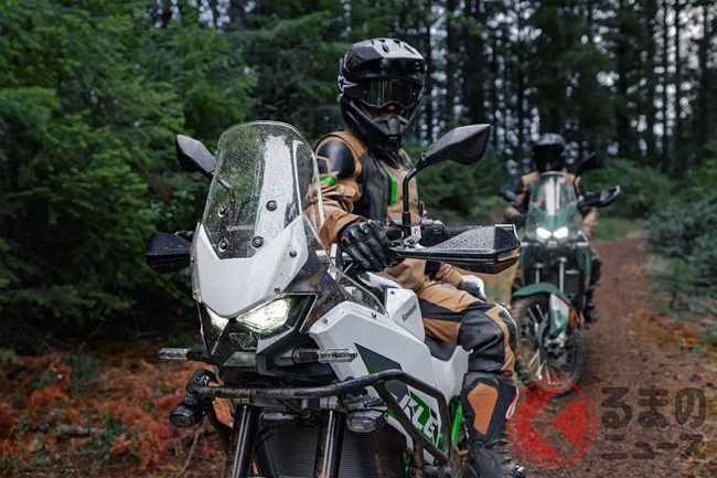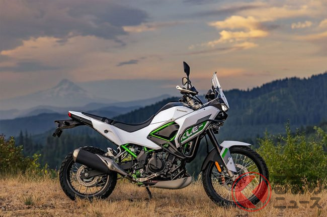新車約100万円! カワサキから「“新”アドベンチャーバイク」登場!“ラリースタイル”でタフな仕上がりの「KLE500」シリーズを海外市場で発表
