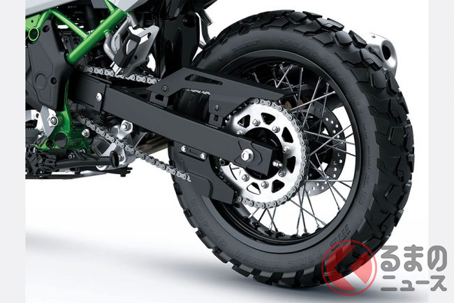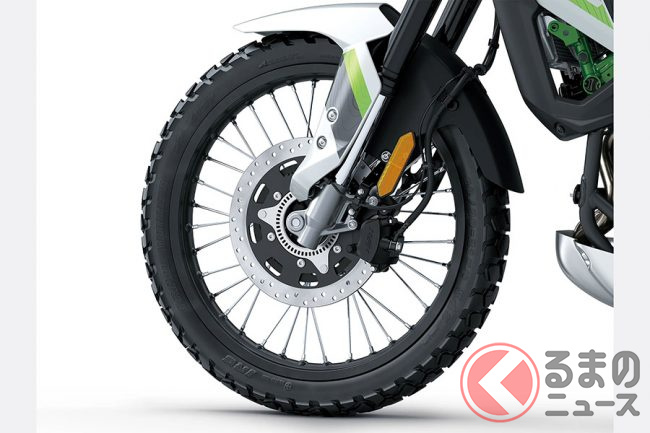 サスペンションはフロントにKYB製の倒立フォーク、リアには新開発のユニトラック式サスペンションを備えています。また、優れた悪路走破性を実現するため、フロントに21インチ、リアに17インチのスポークホイールを装着しています。
