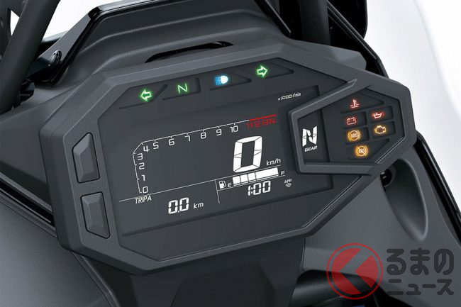 装備面では、16Lの燃料タンクやLEDヘッドライトとテールライトが標準で搭載されます。ウインドスクリーンはラリースタイルで3段階の調整が可能。さらに、カワサキのオフロードバイク「KX」を彷彿とさせるシート、フットペグ、ハンドルバーの配置により、本格的なライディングポジションを実現しています。