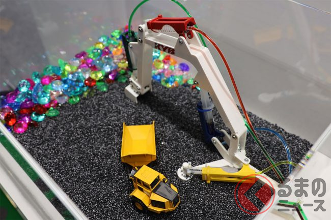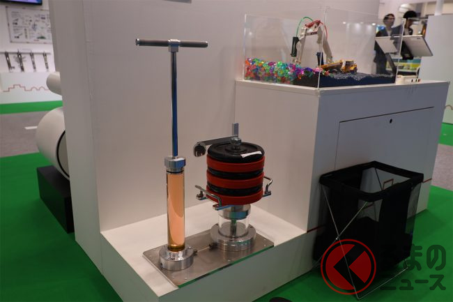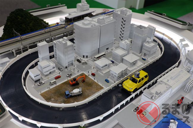 ブース中央に置かれたジオラマでは、カヤバのコア技術である「油圧」が街のさまざまな部分に生かされていることがアピールされており、まさにカヤバが「縁の下の力持ち」であることを感じさせます。