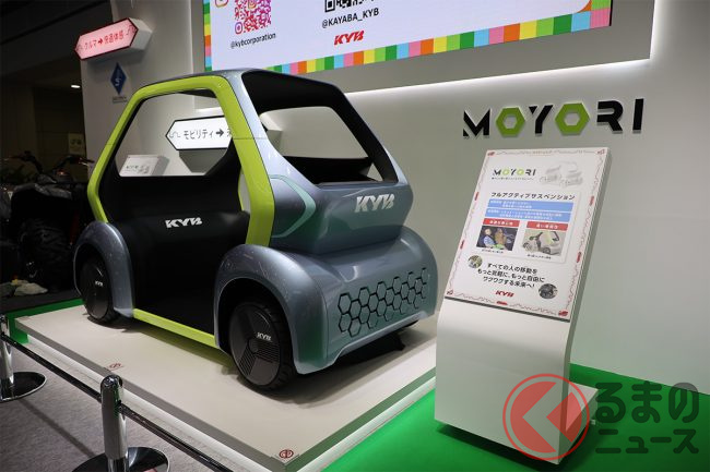 ブースの奥にはカヤバが培ってきたパワー制御技術や振動制御技術、そしてセンシング技術を組み合わせたマイクロモビリティ「MOYORI」が展示されており、同社が考える“未来”を垣間見ることができます。