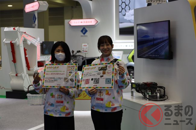 実際、ブース内には「快適体感 乗って体感!ショックアブソーバ」「快適体感 鉄道にも!?カヤバのしわざを感じよう!」「カヤバグッズGET! ミキサでポン!」「動かそう! 注射器ショベルを動かそう!」「快適体感 ATVに乗って”曲がる”をアシスト!カヤバのしわざ」という5つのコーナーが用意されており、カヤバの技術を実際に体感することが可能となっています。