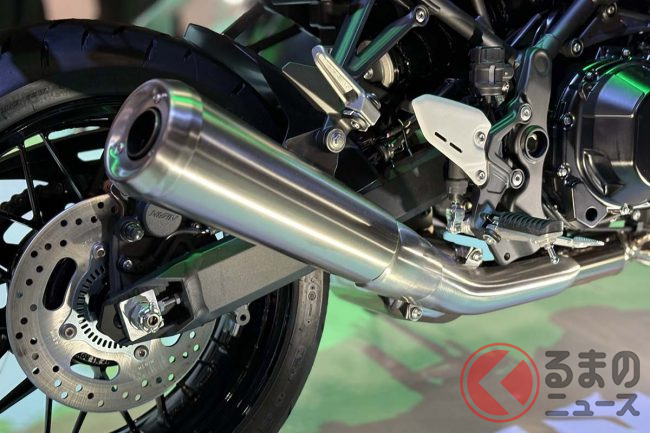 サイレンサーとヒートガードはヘアライン仕上げとされ、カラーリングにはカワサキの伝説的モデル「マッハシリーズ」へのオマージュとしてレインボーラインのグラフィックを採用するなど、洗練されたスポーティさを強調した一台に仕上げられています。