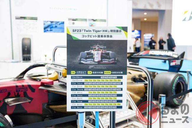 しかもなんと、今回のマシンではそのコックピット乗車体験ができるのだから貴重なチャンスです。ただし体験できるのは小学生以下のお子さん限定なのですが、それだとしてもなかなかない機会です。体験枠には限りがあるので、レース好きのお子さんがいるファミリーは、会場に入ったらまずは西展示場4階にある横浜ゴムのブースに向かうことをおススメします。