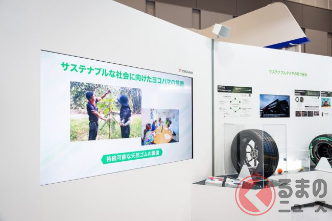 横浜ゴムは、東京ビッグサイト(東京都江東区)で2025年10月30日~11月9日(一般公開は10月31日から)に開催される「ジャパンモビリティショー2025」に出展します。開幕前日の10月29日、ブースがメディア向けに公開され、次世代に向けたタイヤのサスティナビリティ技術などがお披露目されました。