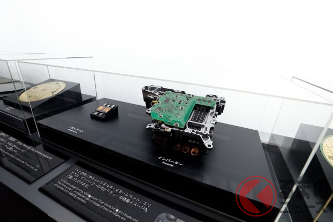 一方で「技術革新には、環境負荷の低減も重要」として、従来製品より電力損失を約70%抑え、コアモジュールを約30%小型化した新型インバーターを開発したことを報告。電動車の中核となるインバーターで世界最高の出力密度を実現したことによって、「車両全体の電費向上に貢献する」と述べました。
