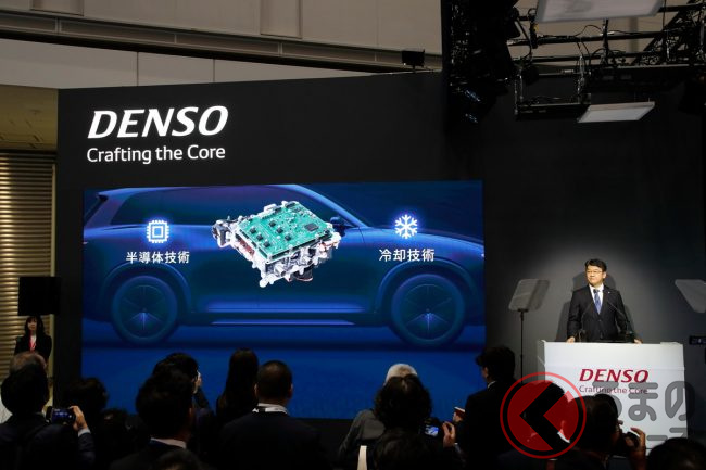 なお30日には、ブースでプレスブリーフィングが行われ、デンソーの林新之助社長が登壇しました。高性能デジタル半導体「SoC(System on chip)」を搭載した統合モビリティコンピューターの2029年市場投入を目指していることや、そのコンピューターを2027年完成予定の新工場で生産すること、電動車の中核となる新型インバーター開発などに言及。クルマの進化とモビリティ社会の未来を支える決意を改めて示しました。