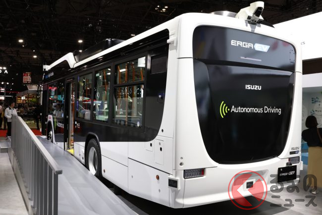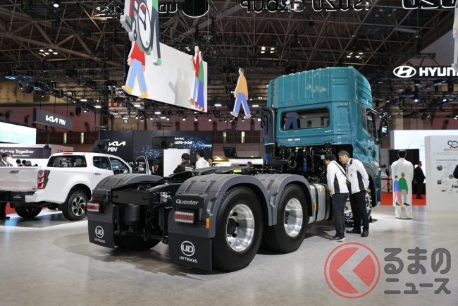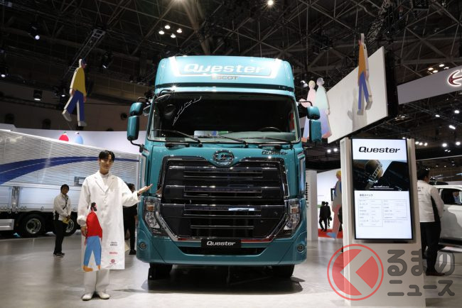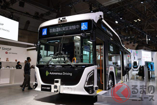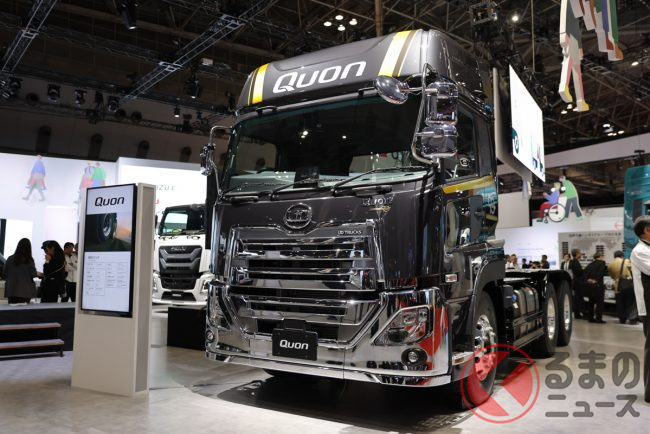 10年ぶりにキャブエクステリアを一新した大型トラックのいすゞ「ギガ(ワールドプレミア)」、最高出力530psを誇る13リッターエンジンを搭載する大型トラックのUDトラックス「Quon GW 6×4」(参考出品)、欧州の排ガス規制「ユーロ6」に準拠した新興国専用大型トラックであるUDトラックス「Quester」(2026年モデル・参考出品・ワールドプレミア)、そして国内初のBEVバス、いすゞ「エルガEV」をベースに安全・安定した自動走行を実現するいすゞ「エルガEV 自動運転バス」(参考出品・ワールドプレミア)が展示されました。