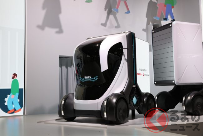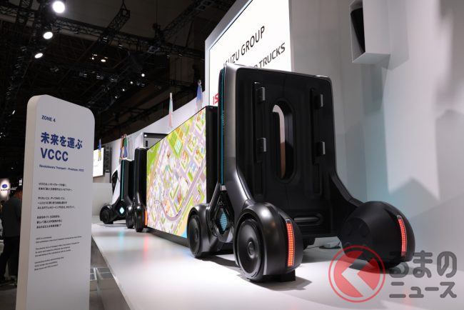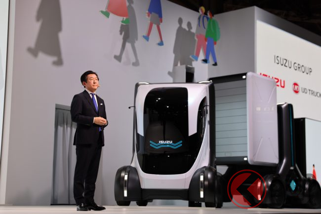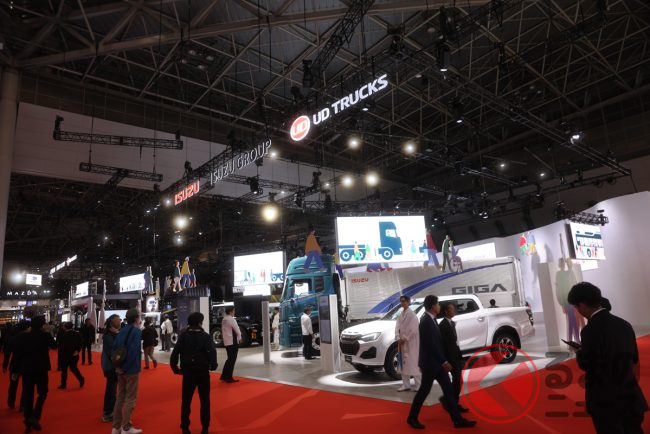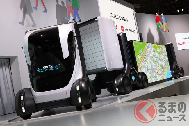 いすゞグループ(いすゞとUDトラックス)が、東京ビッグサイト(東京都江東区)で2025年10月30日~11月9日(一般公開は10月31日から)にわたって開催されている「ジャパンモビリティショー2025」に出展しています。開幕前日の29日、ブースがメディア向けに公開され、斬新なコンセプトカーから参考出品車など6台のトラック・バスと、未来の物流に向けたソリューションなどの展示を行いました。