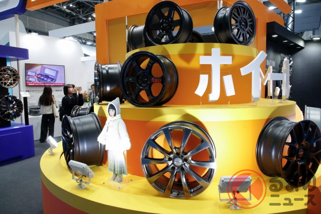 マルカサービスが「ジャパンモビリティショー2025」に出展し、市販車向けから完全オーダーメードで1本100万円超えのホイールまで、各種ホイールを展示しました。