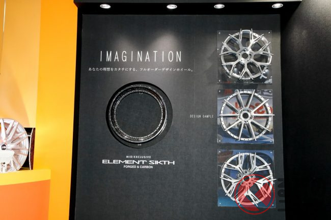 そして、ブースの中でもひときわ注目を集めていたのが、理想を形にするフルオーダーデザインホイール「MID Exclusive(エムアイディーエクスクルーシブ) ELEMENT SIKTH(エレメント シックス)」です。