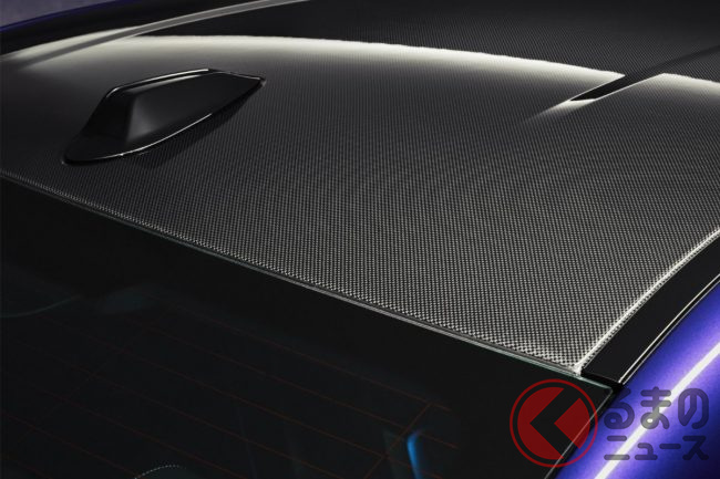 最大の特徴は、徹底した軽量化とパワーアップ。ルーフやトランクリッド、ディフューザー、ドアミラーキャップなどにCFRP(炭素繊維強化プラスチック)を多用することで約30kgの軽量化を実現しています。