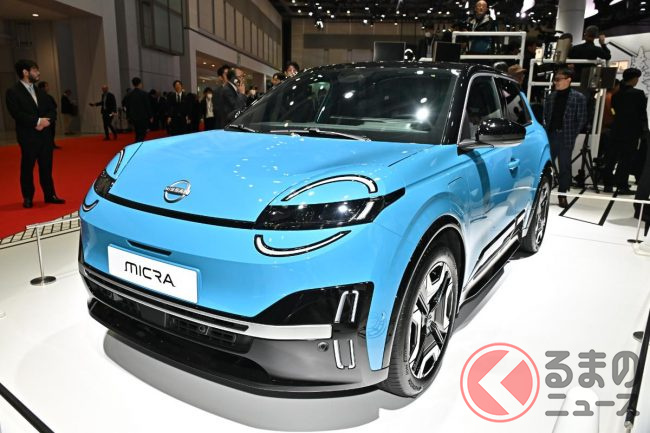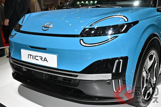 日産「マーチ」系譜の新型「マイクラ」日本初公開! めちゃ懐かしい「丸目ライト」が良いね! 全長4mの“ちょうどいい”ボディに「先進パワートレイン」搭載! 往年のファンも納得の実車登場!
