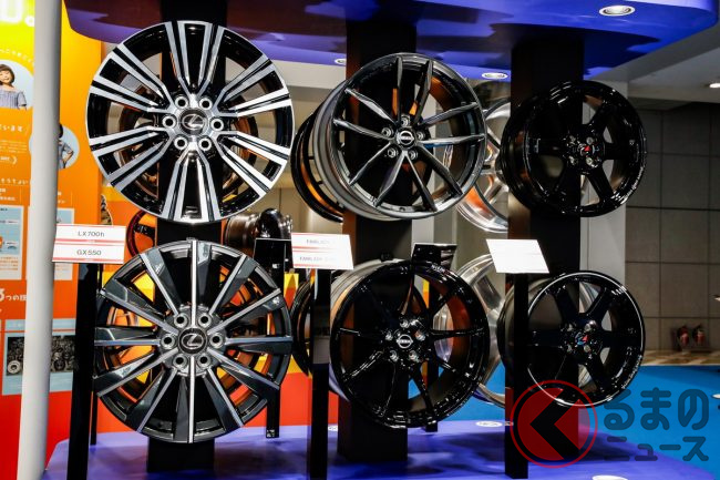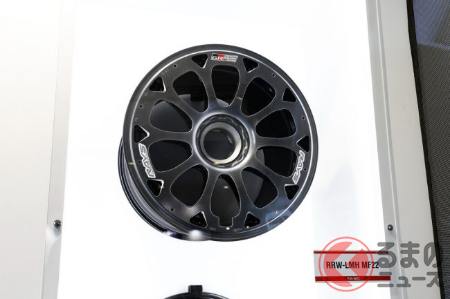 そのほか、限定200台に対して9500件を超える応募が殺到した「マツダ スピリットレーシング ロードスター 12R」に純正装着されているホイールをはじめ、日産「フェアレディZ」、レクサス「LX700h」など市販車向けのレイズ製純正ホイールも展示。その裏にはTE37をはじめとする代表モデル6本が並び、ブランドの歴史と技術の進化を物語る構成となっています。