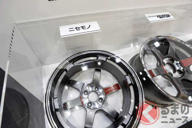 TE37のレプリカ品は、軽合金製ホイールの安全基準である「JWL基準」の負荷をかける前に破損してしまった一方、正規品のTE37はJWL基準を大きく上回る負荷試験を突破しました。同社の品質に対するこだわりと信頼性の高さを、目で見て実感できる展示です。
