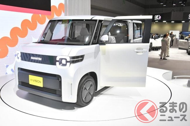 ダイハツ名車「ムーヴコンテ」後継モデル!? 「カクカクシカジカ」でブーム起こした“角ばり軽ワゴン”復活する? 初公開の新「K-VISION」との“関係性”と狙いをデザイナーに聞いた!