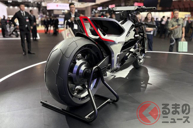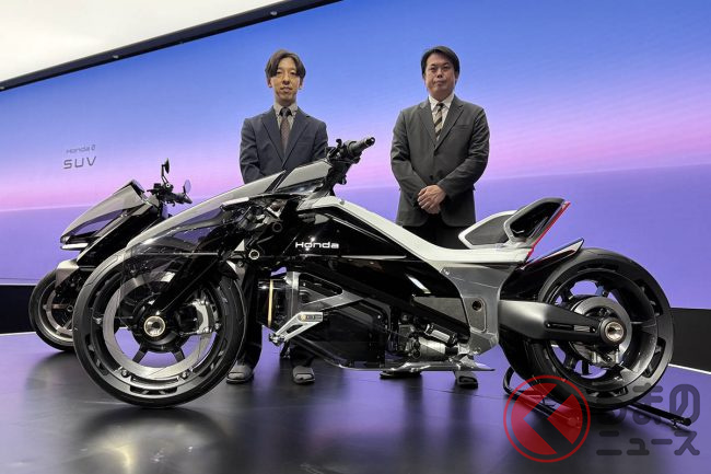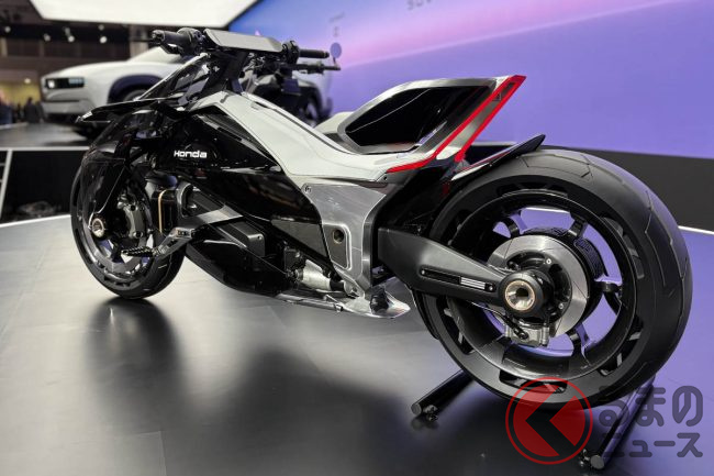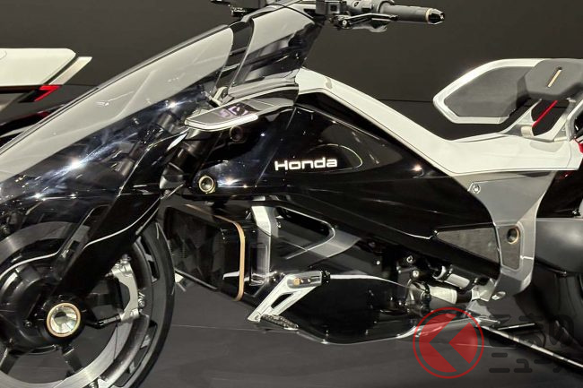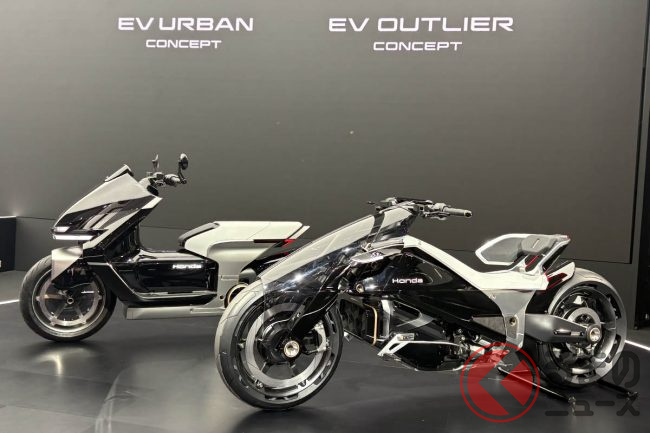 ホンダ「“新”コンセプトバイク」世界初公開! “電動二輪駆動”だからできた“低いシート位置”に注目! 「EV OUTLIER (アウトライヤー) Concept」市販化の可能性は?