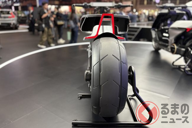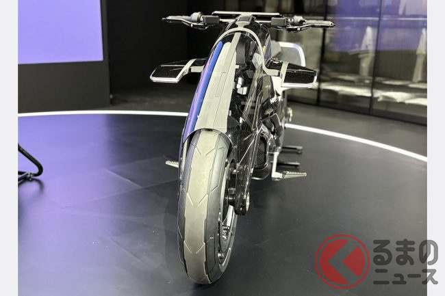 また、技術的な側面にも触れ、「電動モーターサイクルのレイアウトの自由度は非常に高くなります。それを活かしたパッケージがどうなるかを検討しました。前後に動力源を振り分けることで極端に低いシート位置を実現していますが、これはライダーのライデイングポジシヨンの自由度を高めることにも貢献しています。現時点で市販化されるかは別として、このデザインや技術の一部を量産モデルに活かすなど、使える部分を活用していくことになるのではないかと考えています。また、4輪の電動を研究してる部門とディスカッションするなど、“いろんなモビリティ作ってる会社”として取り組んだ点にも注目していただきたいです」と語りました。