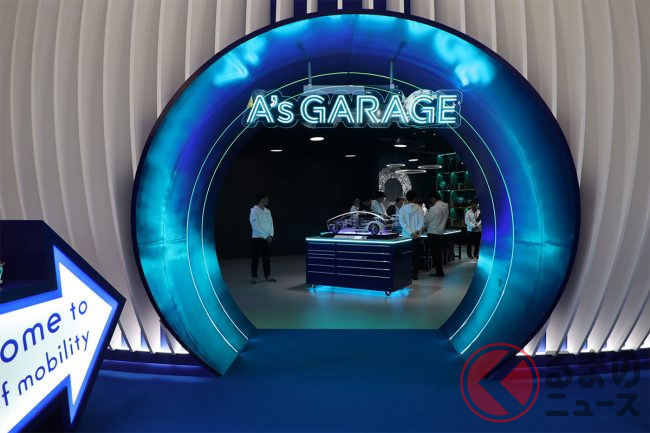 「The Future of Emotional Mobilityー心を動かす移動の未来ー」をテーマにした今回の展示では、2035年のガレージをイメージしたという「A’s GARAGE」のなかで、アイシンの提案する「10年後のモビリティの世界」を体験できます。