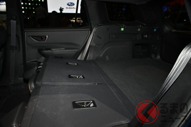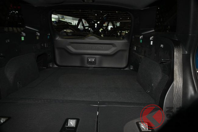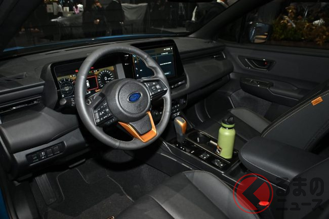 外観は、中央には巨大なマットブラック仕上げの「SUBARU」ロゴがあしらわれた専用フロントグリルや、LEDフォグランプ、角張ったフェンダー形状など、標準モデルとは一線を画すラギッドな印象が際立ちます。内装は防水性シートを備え、広々とした快適な空間が広がります。